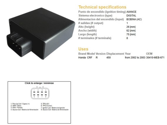 DZE MODUŁ ZAPŁONU CDI HONDA CRF 450R '02-'03 (30410-MEB-671)