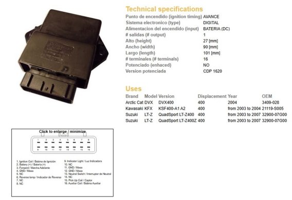 DZE MODUŁ ZAPŁONU CDI SUZUKI LTZ 400 QUADSPORT '03-'07; KAWASAKI KFX 400 '03-'04; ARCTIC CAT 400 '04 (OEM 32900-07G00) DZE ELEKTRYKA