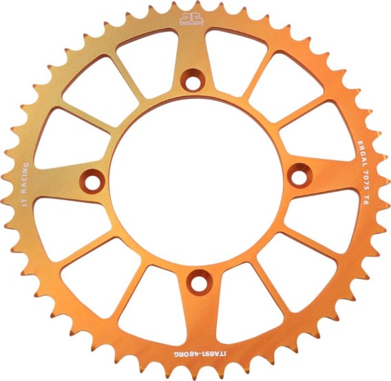 JT ZĘBATKA TYLNA 4549 48 ALUMINIOWA RACELITE KTM FREERIDE 250 14-17 (+2), 350 12-17 (454948JTA) (ŁAŃC. 520) KOLOR POMARAŃCZOWY