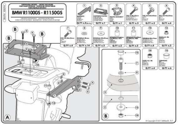KAPPA STELAŻ KUFRA CENTRALNEGO BMW R 1100GS (94-99), R 1150GS (00-03) ( Z PŁYTĄ MONOKEY )