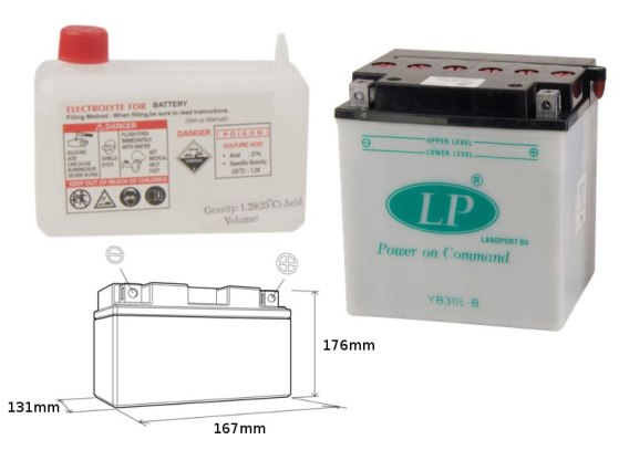 LANDPORT AKUMULATOR YB30L-B (MD LB30L-B) 12V 30AH 168X132X176 HARLEY DAVIDSON, POLARIS 600/700 OBSŁUGOWY - ELEKTROLIT OSOBNO (4)