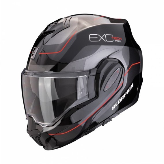 SCORPION KASK SZCZĘKOWY (SZCZĘKA DO TYŁU) EXO-TECH PRO COMMUTA BK-S-RD KOLOR CZARNY/SREBRNY/CZERWONY ROZMIAR M