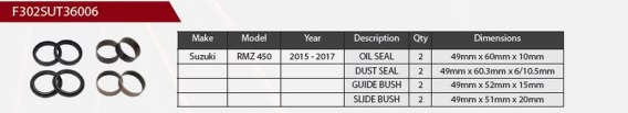 SHOWA 2024/07 ZESTAW NAPRAWCZY AMORTYZATORA PRZEDNIEGO SUZUKI RMZ 450 '15-'17, (USZCZELNIACZE OLEJOWE X 2, PYŁOWE X 2, PANEWKI X